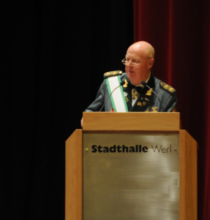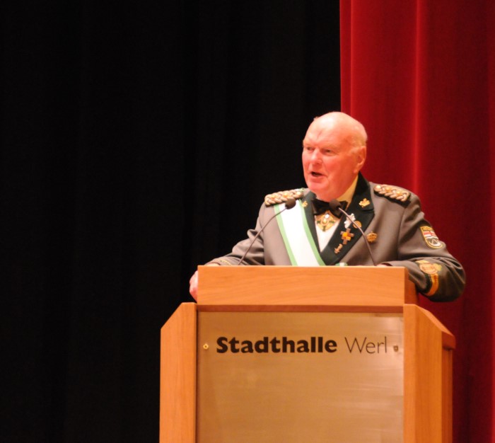 Gustav Theismann alle teilnehmenden Bruderschaften in der Stadthalle