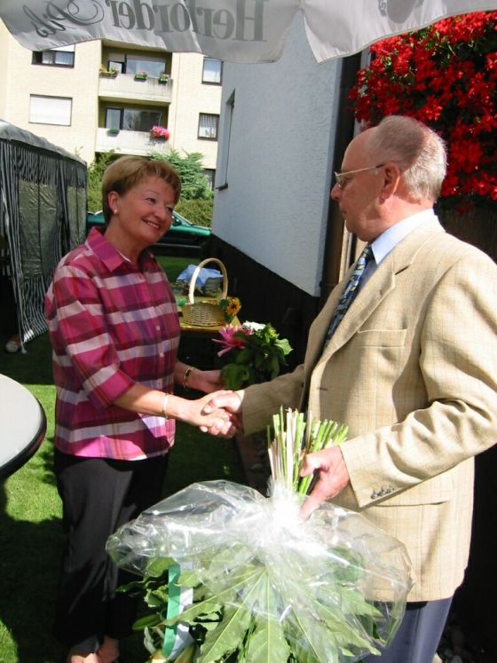 Die besten Wünsche der Kompanie überbrachten der Königin Kompaniechef Karl Heinz Reineke und sein Stellvertreter Dieter Reichelt (wie so häufig wieder Mal hinter der Kamera). Diesen besten Wünschen schloss sich der Zugführer des diesjährigen Königszuges 5, Dieter Lammers, an, nicht ohne ein Zugpräsent zu übergeben.