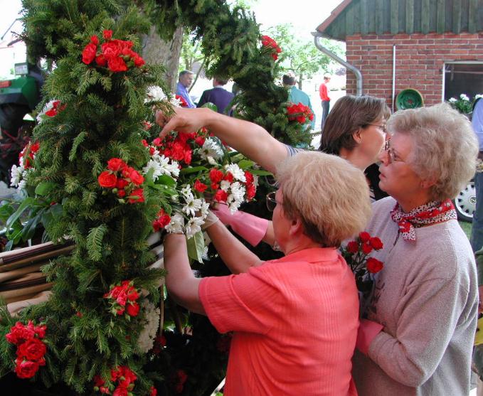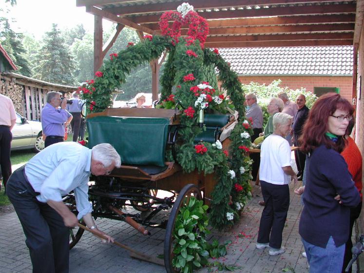 Für den Zug 5 galt es bereits Sonntag früh die Königskutsche zu schmücken. Die "Arbeiten" (wer sieht das als Arbeit an?) gingen so zügig voran, das bereits um 11:00 Uhr das "Probesitzen" statt fand. Wie dem Blick des Königs entnommen werden kann, war er rundum zufrieden. Aber auch Andere probten schon einmal wie es sich in der Könisgkutsche sitzt (die Zukunft wird zeigen was sich aus dieser Probe ergibt).