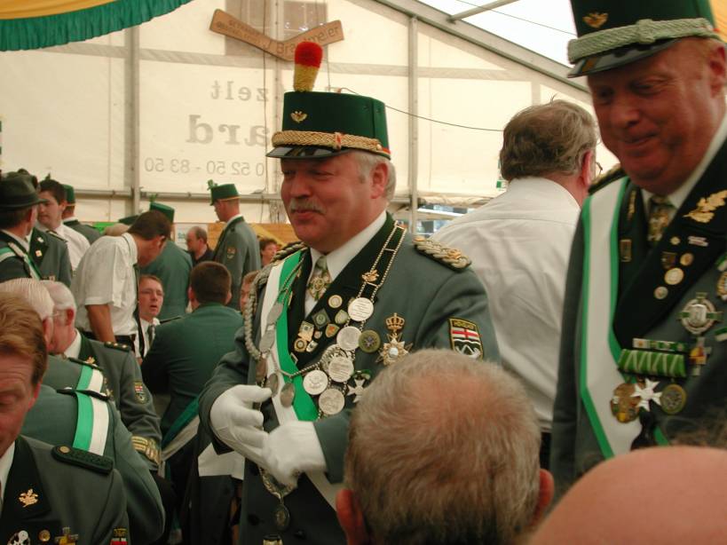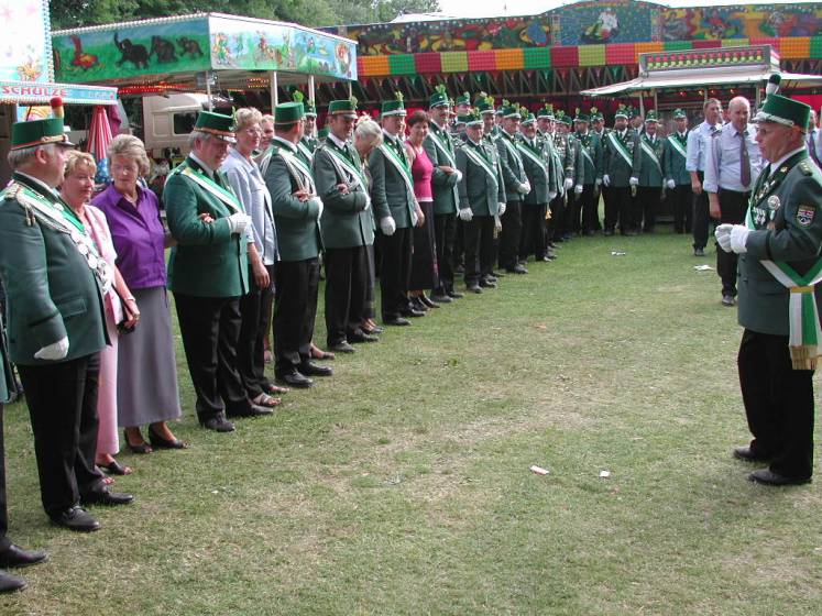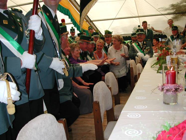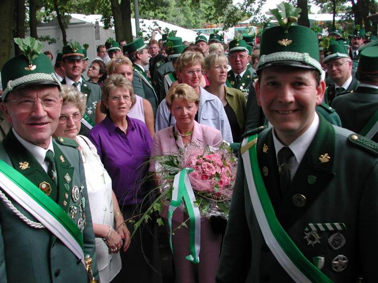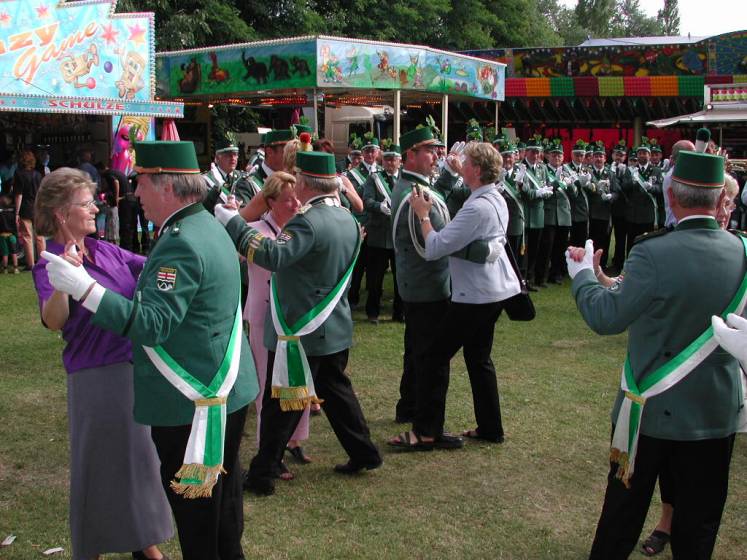 Nach dem Thronbesuch folgte im "Kleinen Kreis" der in Ostenland übliche "Schottertanz". Aufgrund der günstigen Gegebenheiten war der Kompaniechef der Dorfkompanie, Karl Heinz Reineke, froh den Ehrentanz mit der Königin auf dem Rasen ausführen zu dürfen.