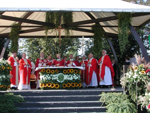 um am Hochamt teilzunehmen der mehrere tausend Teilnehmer beiwohnten.