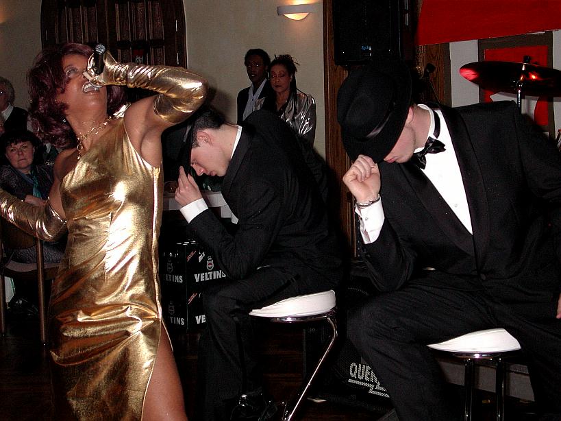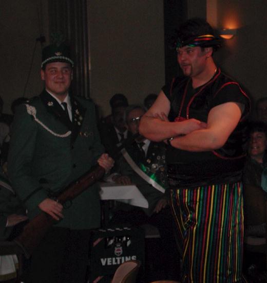 Zur Stimmung trugen erstmalig Werner Meier und Franz Moc (Franz Josef Moczynski) bei. In der Anmoderation kurzerhand als Duo WMF vorgestellt, liessen Sie dann auch einige messerscharfe Kommentare über Ereignisse im vergangenen Schützenjahr folgen. Untermalt mit stimmungsvollen allseits bekannten Hits folgten ihnen die Königsballgäste schunkelnd, klatschend und mitsingend.