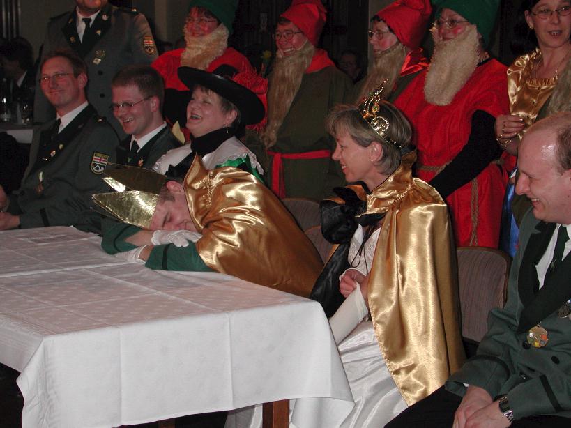 Den ersten Programmpunkt führten die U30-Schützen und die Damenriege auf. Unter dem Motto "Ein märchenhaftes Königsjahr" wurden Höhepunkte des Königsjahres unter ironischen Gesichtspunkten zum Besten gegeben. Das dabei kein Auge trocken blieb zeigt, das sie mit ihrem modernen Märchen und vielen aktuellen Anspielungen wieder goldrichtig gelegen haben.