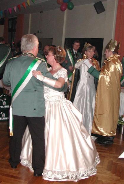 Immer ein besonderes Highlight, ein Tanz mit der Königin. Auch an diesem Abend der Wunsch vieler Schützen. Einige Partner sind hier zu bewundern. Ob mit ihrem Ehemann König Robert, mit ihrem Vater Bernhard oder mit dem Kompaniechef der Königskompanie, Königin Agnes Förster kam dem Wunsch eines Tanzes immer gern nach.