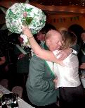 Theismann pünktlich um Null Uhr das Mikrofon um Petra Bonke, Gattin