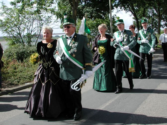 dem Hofstaat, sowie ca. 100 Schützenbrüdern in zwei Bussen bereits