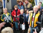 Besonders die Kinder waren von den widrigen Wetterverhältnissen immer wieder betroffen. Doch allem Wetter zum Trotz waren die Insignien beim Vogelschießen der Kinder heiß begehrt und nach der Proklamtion des Kinderhofstaats stellte sich dieser mit dem "erwachsenen" Hofstaat zum gemeinsamen Foto.