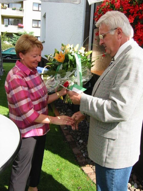 Die besten Wünsche der Kompanie überbrachten der Königin Kompaniechef Karl Heinz Reineke und sein Stellvertreter Dieter Reichelt (wie so häufig wieder Mal hinter der Kamera). Diesen besten Wünschen schloss sich der Zugführer des diesjährigen Königszuges 5, Dieter Lammers, an, nicht ohne ein Zugpräsent zu übergeben.