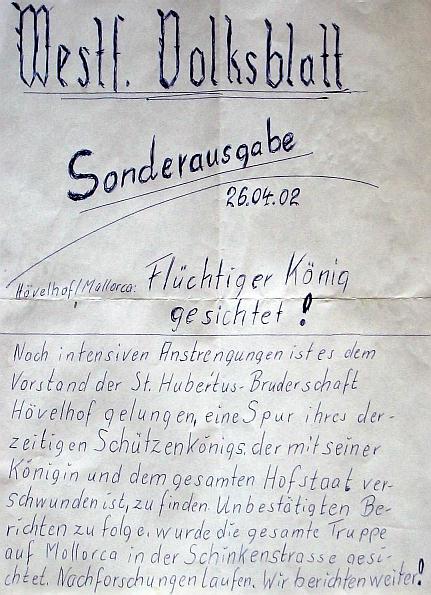 Der noch amtierende Hofstaat der St. Hubertus Schützenbruderschaft Hövelhof, mit Sonnenkönig Robert an der Spitze, hat während des gemeinsamen viertägigen Mallorca-Urlaubs eine neue Sommeruniform eingehend getestet. Bei strahlendem Sonnenschein und hochsommerlichen Temperaturen wurden u.a. Ausflüge und Besichtigungen auf der Insel unternommen. Ebenso gehörte ein Besuch der Kathedrale von Palma zum Programm. Außerdem kam auch das Strandleben an diesen Tagen nicht zu kurz. Bei den abendlichen Ausflügen wurde König Robert allabendlich öffentlich gehuldigt.