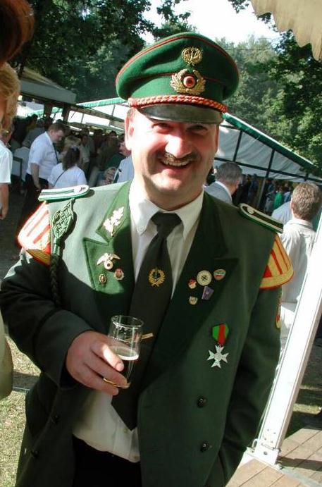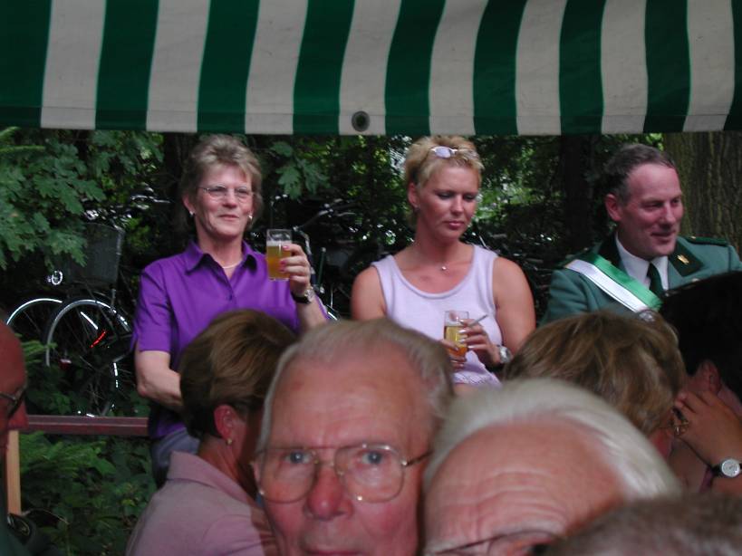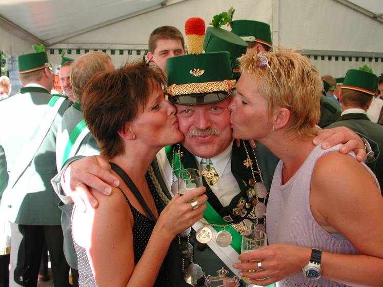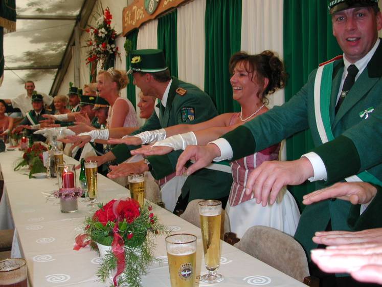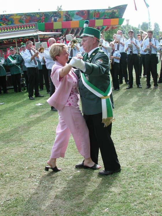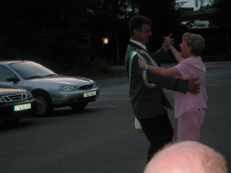 Nach dem Thronbesuch folgte im "Kleinen Kreis" der in Ostenland übliche "Schottertanz". Aufgrund der günstigen Gegebenheiten war der Kompaniechef der Dorfkompanie, Karl Heinz Reineke, froh den Ehrentanz mit der Königin auf dem Rasen ausführen zu dürfen.