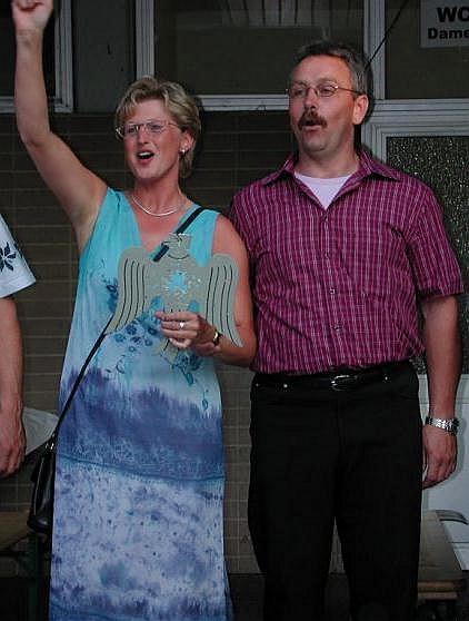 Erstmalig wurde auch ein Vogelschießen für die Frauen veranstaltet. Nach hartem aber fairem Wettkampf stellte sich schließlich der "Familienfest Hofstaat" dem Fotografen und auch der Siegertanz durfte nicht fehlen.