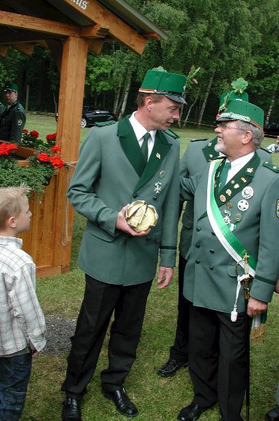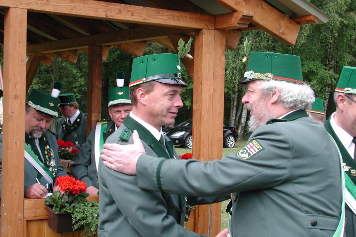 Schützenbruder Willi Werner beim Hauptmann der Dorfkompanie, Dieter