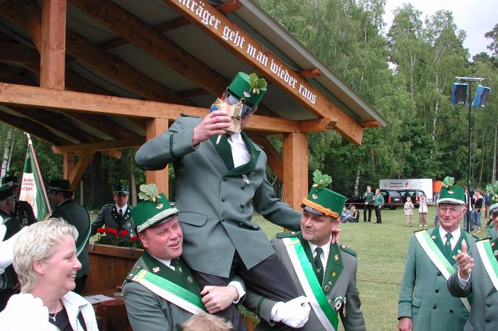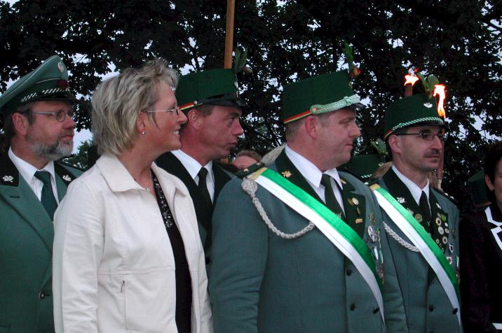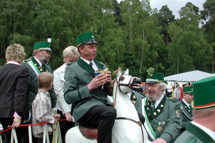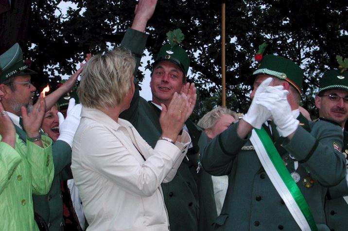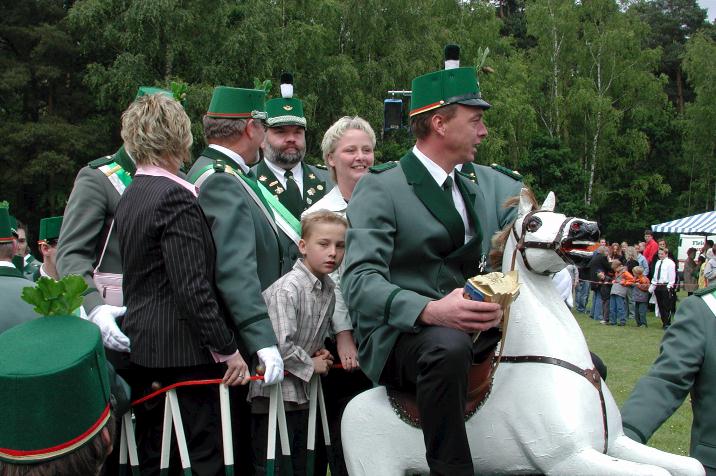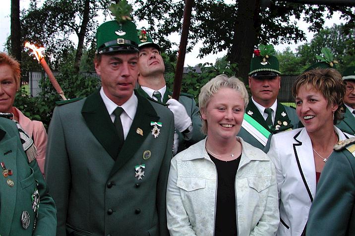 Schützen mit ihrem neuen Prinzenpaar, unter Mitnahme eines geeigneten