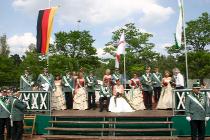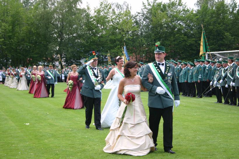 Entsprechend der tollen Festkleider von Königin Enid, den Prinzessinnen und den Hofdamen bot sich dem Hofstaat, den zahlreichen Schützen aus Nah und Fern und den vielen Gästen, bei strahlendem Wetter, ein fantastisches Bild. Großer Jubel brandete bei der Parade für alle Paare immer wieder auf.