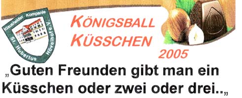 Und wieder ein freudiges Ereignis in der Klausheider Kompanie! Stolze 29 Ringe führten zum Erfolg und somit erreichte am 12.02.2005 Frederik Kückmann die Würde des Schülerprinzen |