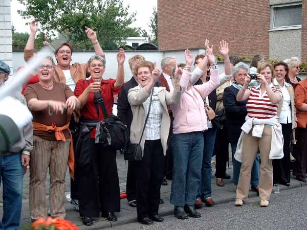Die tobende Menge an den Straßenrändern |