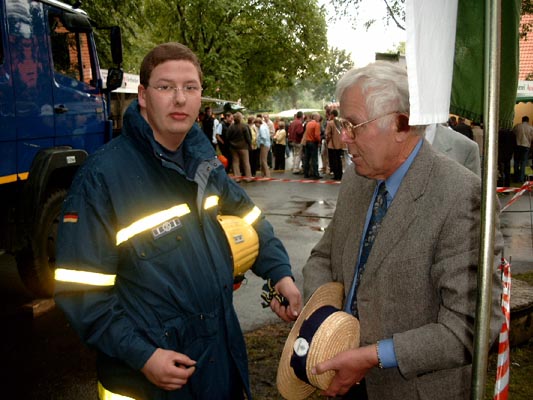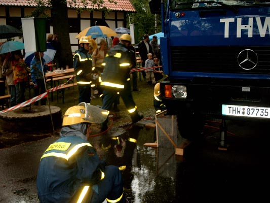 Hat leider nicht geklappt. Und das musste auch die THW Jugend erfahren. Neben den vielen Informationsgesprächen war ihr Hauptziel , den LKW auf 4 Biergläser abzustellen. Alle Mühen waren leider umsonst. NUR das Wetter hatte Schuld, das die Gläser den LKW nicht so richtig tragen wollten. Axel Hingst (stellvertretender Kassier ) nahm spontan den Hut und sammelte schnell noch einige Euros für die Jugendarbeit des THW , die er dem Jugendleiter Markus Ehlert überreichte. Auch wenn es nicht ganz geklappt hat, vielen Dank für euere Mühe |