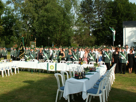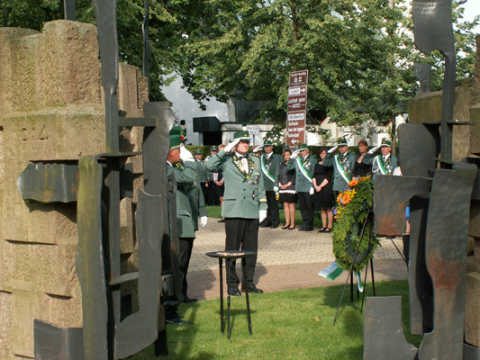 Erst die hl. Messe, dann die Ansprache des Oberst Hubert Bonke am Ehrenmahl mit der Kranzniederlegung und dann folgten wir der Einladung unseres Präses Bernd Haase, und marschierten in den Pfarrgarten ein. |