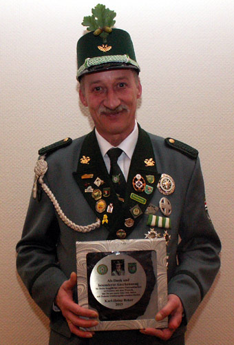 Als Dank für die Arbeit als Schießmeister wurde Karl-Heinz Reker ein Präsent überreicht. |