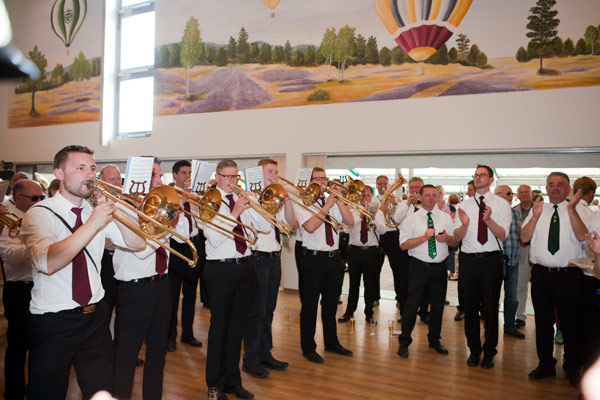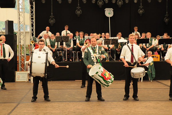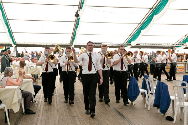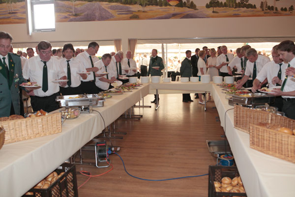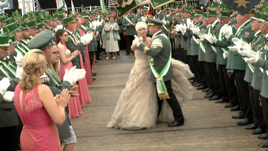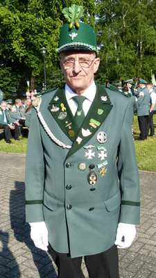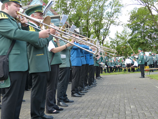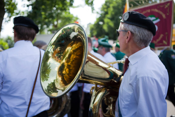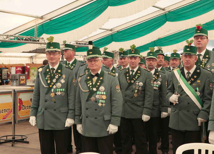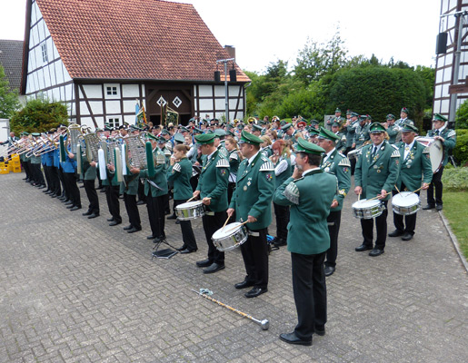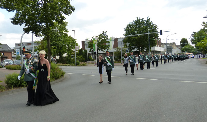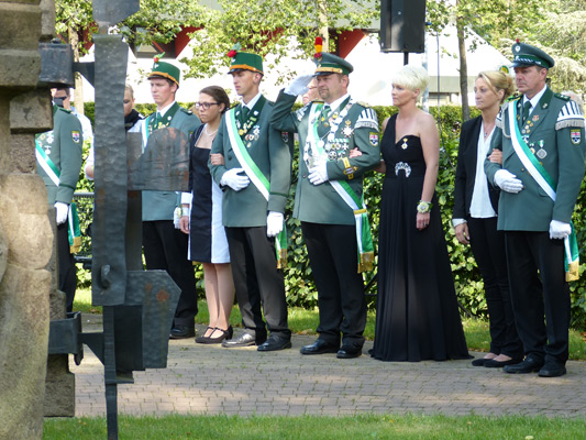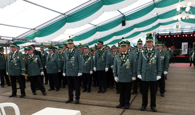 Der Beginn eines schönen Schützenfestes. Erst die Hl. Messe, dann Kranzniederlegung am Ehrenmahl und dann Einzug ins Biwak |