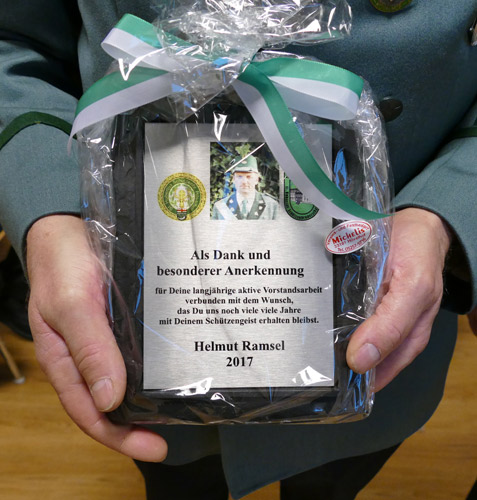 Als Dank für viele Jahre Vorstandsarbeit wurde Helmut Ramsel ein Präsent überreicht
