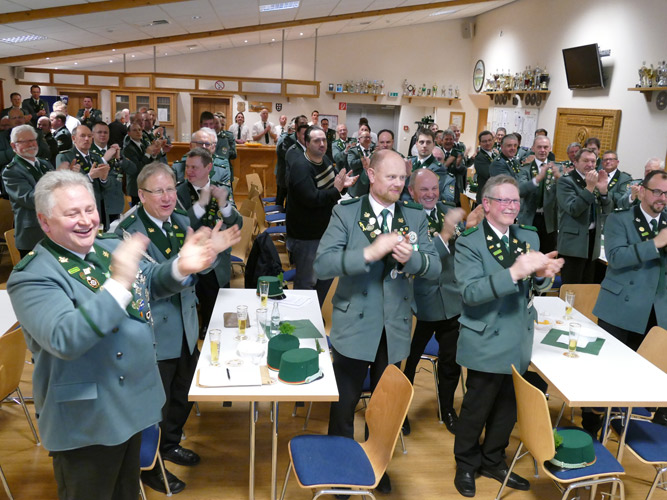 Trotz der Grippe und Erkältungswelle nahmen an der Versammlung fast 100 Schützen teil. Aus der Versammlung: Als neue Kassenprüfer wurden Andreas Heimann und Dieter Prinzensing vorgeschlagen. Die Kreuzpflege übernimmt für dieses Jahr Gregor Wecker. Da Helmut Ramsel als Quartiermeister nicht mehr zur Verfügung steht, wurde Thomas Liemke für diesen Posten vorgeschlagen. |