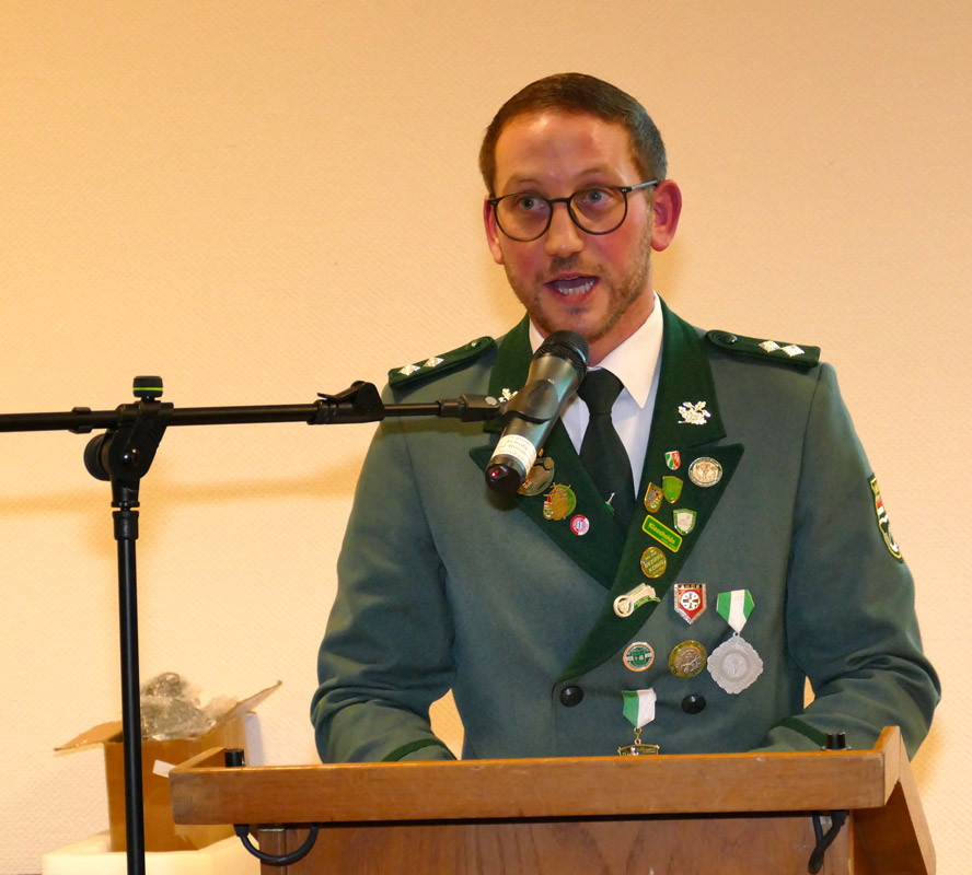 stellv. Kompaniechef Roland Müller mit einem Rückblick des Schützenjahres 2023