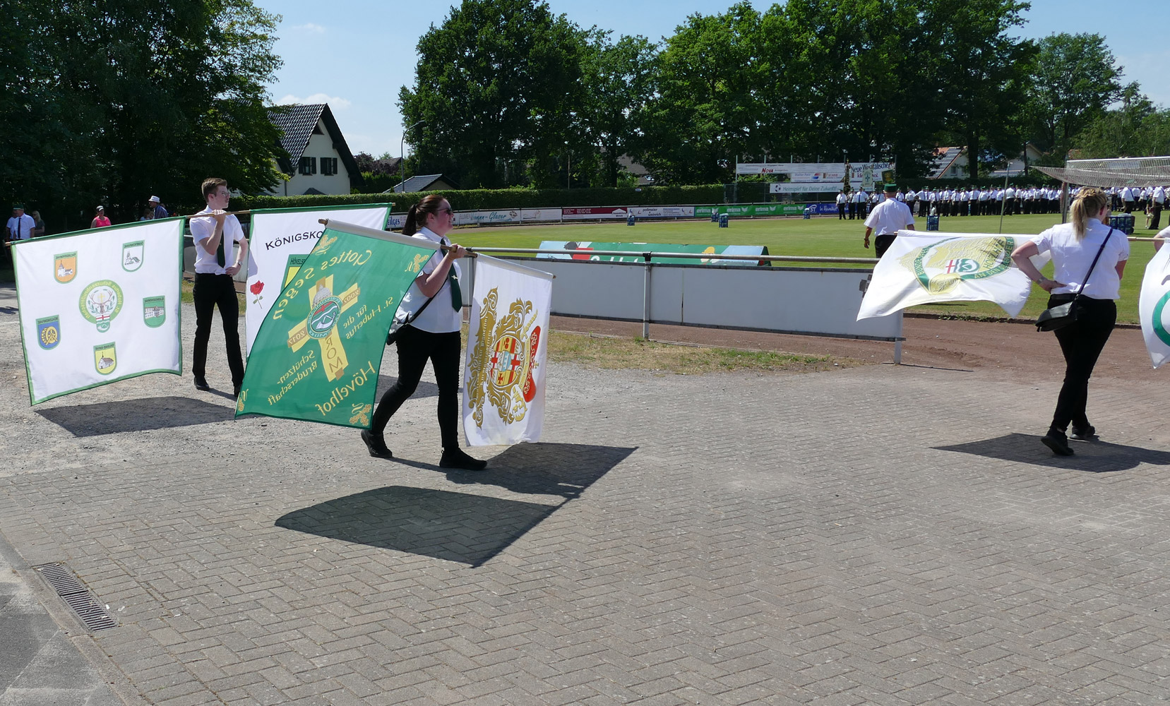 Sonntag ist Parade Mit der Musik, den Schützen, den Fahnenschwenkern, den Gästen und dem gesamten Hofstaat |