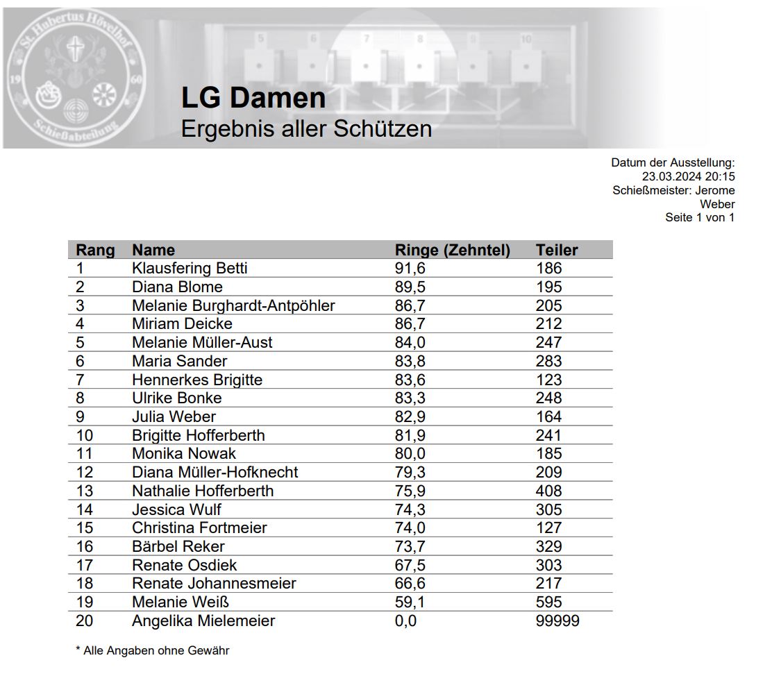 KK Pokalschießen am 23.03.2024 der Uffz.- und Offiziere mit ihren Frauen |